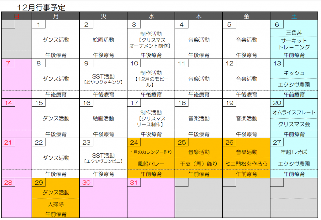 12月の予定と活動報告 広島