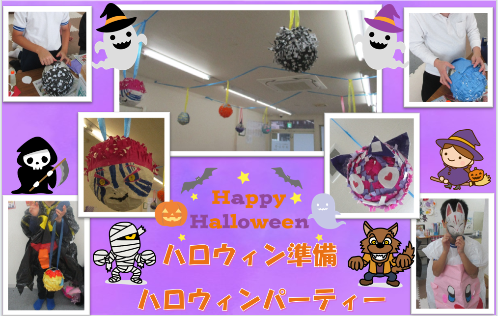 ハロウィンパーティー当日は、ぶら下がっているピニャータを見てとても喜ばれ、仮装もしてハロウィンの曲に合わせてみんなで踊って楽しい時間を過ごしました。