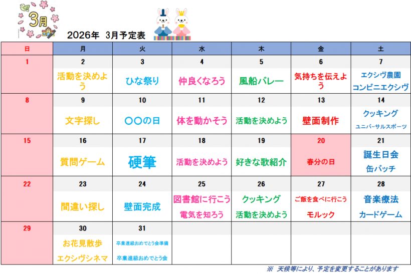 2月の壁面は節分をイメージして作りました👹「鬼は外~福は内~」とも言うように、自分の思う追い出したい気持ち、福を呼び込むおたふく飾りを作りました✨みなさんの描いた鬼から、優しさが伝わってきますね(^▽^)