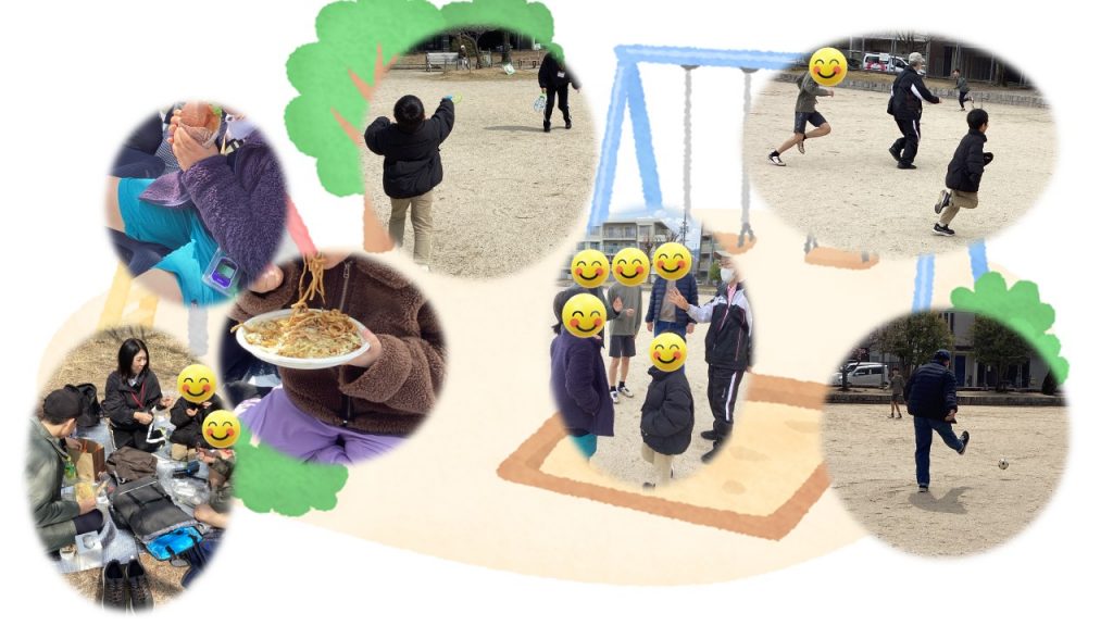 食べ終わった後は、公園で元気いっぱい遊びました✨広い場所で走ったりしながら、友だちと一緒に楽しい時間を過ごしました。笑顔が沢山見られました。