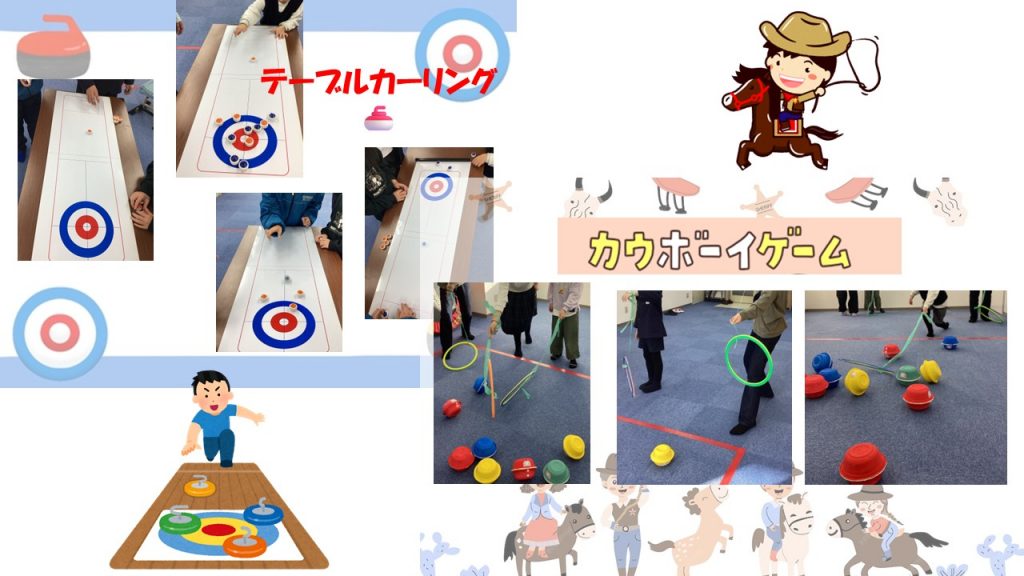 子どもたちが楽しみながらルールを理解したり、集中して取り組む力を育てられるよう、テーブルカーリングやカウボーイゲームなどの活動も取り入れています😊