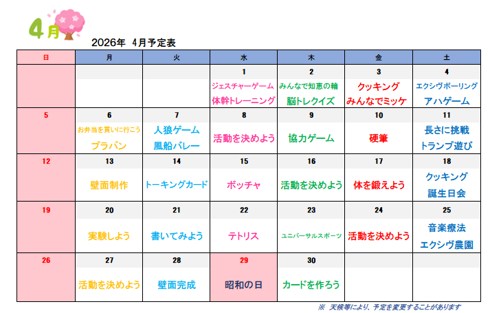4月の行事予定と活動報告 第2