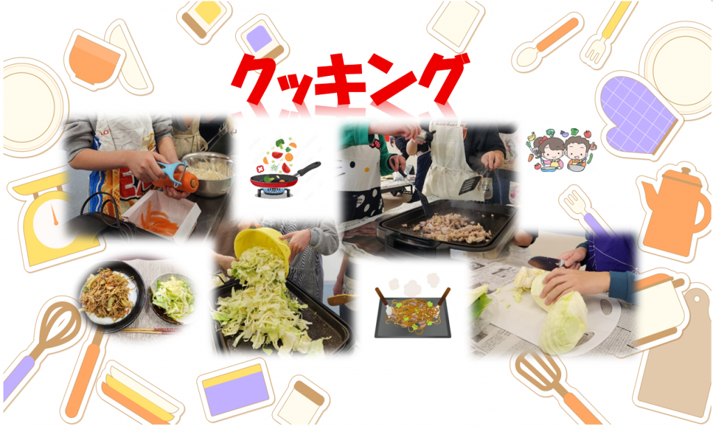野菜を切ったり、材料を混ぜたりと、役割分担をしながらみんなで協力して調理を進めました。